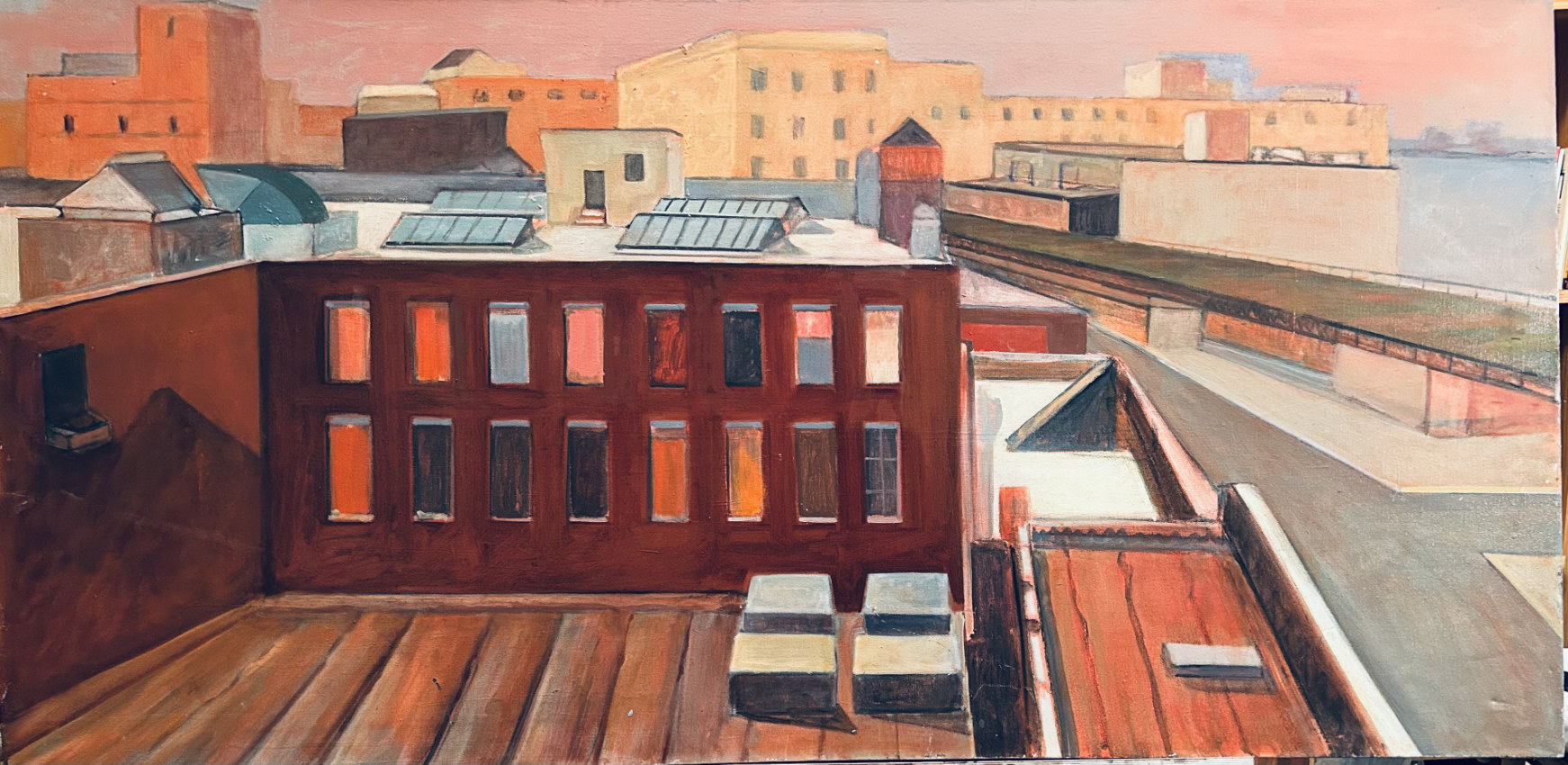 My urban views and landscapes are faithful to a specific time, place and condition of light. At the same time, they reflect my concern with geometry, the relationship between shapes, and the accidents of paint. The tension between fidelity to time and place, and the structural and painterly concerns of abstraction, has been my challenge.This makes the work lively and open ended.