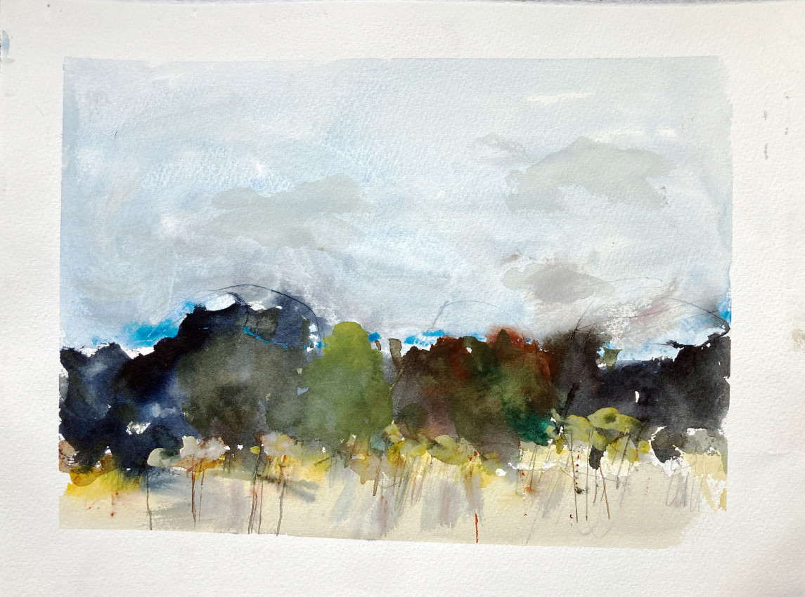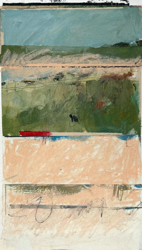 After a long career in graphic design and a continuing career in design education I have come back to painting, collaging and printmaking as a method of visual exploration. My work is primarily derived from plein air landscape studies: the drawing, painting, collaging, mark-making process emerges through the experience, contemplative or spontaneous, of the environment of which it is engaged. The landscapes are generally small scale interpretive and abstracted compositional responses to their natural surroundings. Some of the work finds its way back to the studio or gets reworked into imagined landscapes (and occasionally still life) and in experiments in stone lithography and collage. The work is very much connected to place in and around Philadelphia, the marshes and farmland of Cumberland County New Jersey and in regular trips to Italy and the UK.